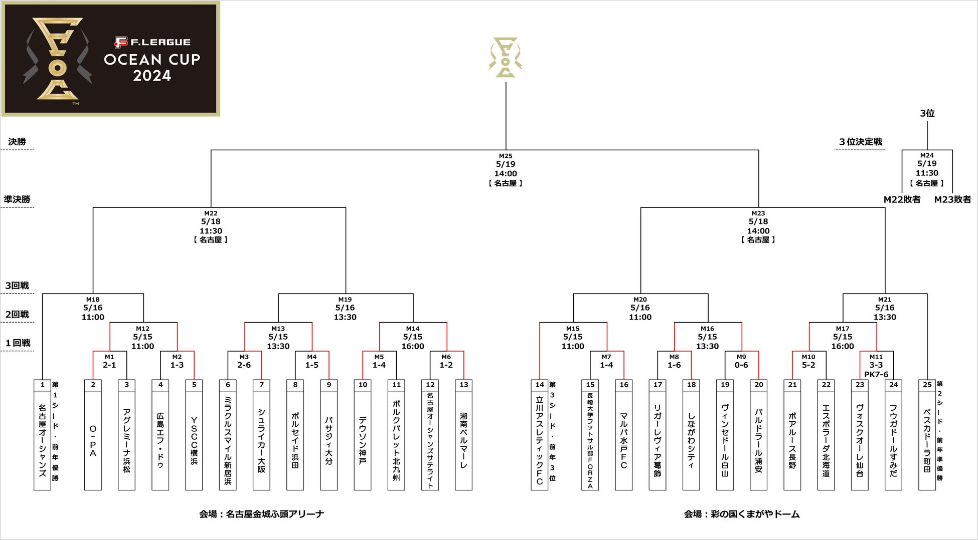 Fリーグオーシャンカップ2024 大会2日目は、初日から実施されている1回戦の残りの8試合、全てが消化されました。F1クラブとF2クラブの対戦では、すべての試合でF1クラブが勝利。今季のF2の行方……