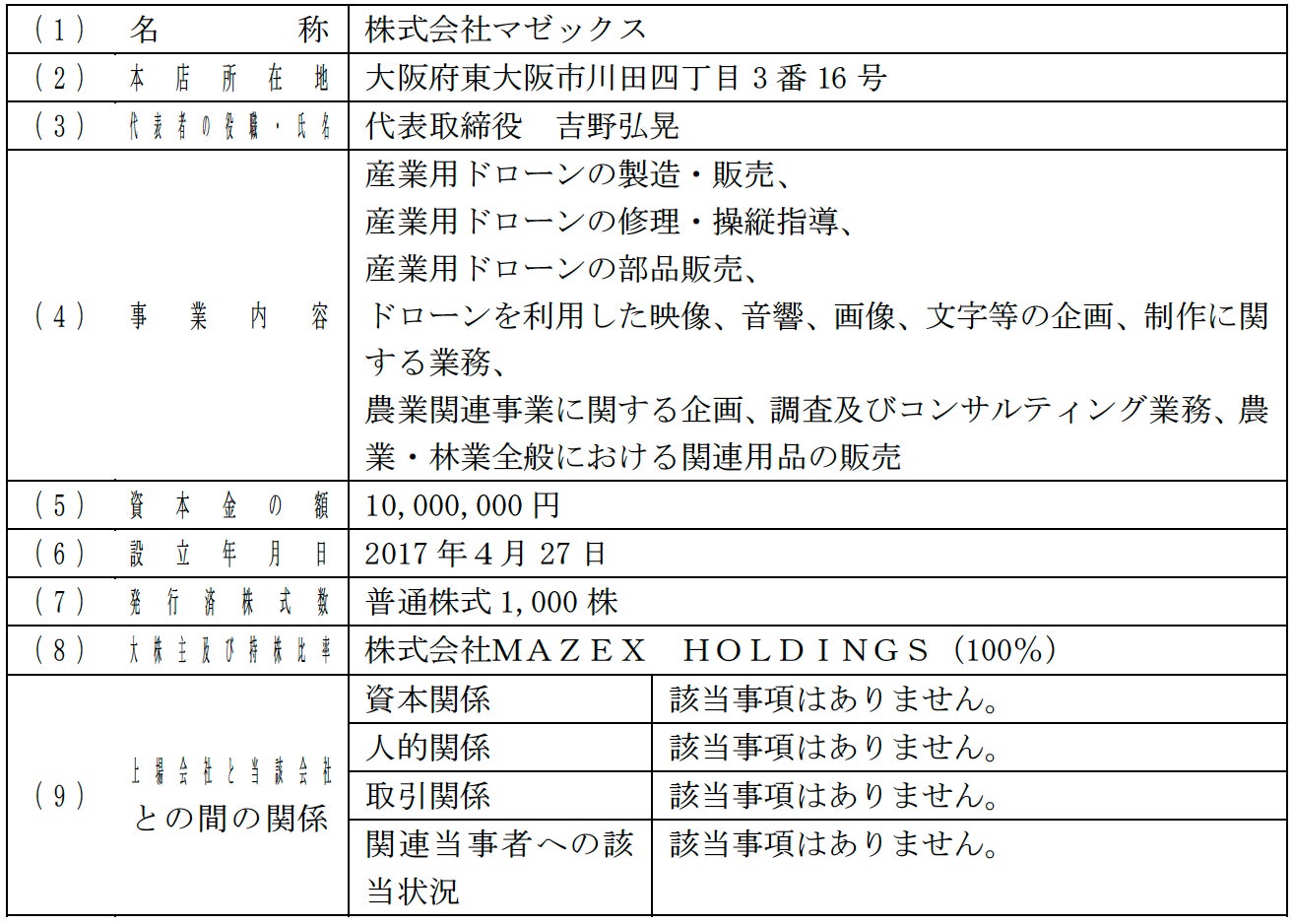 ※適時開示にてマゼックス社の表記を後株にしており、大変申し訳ございませんでした。