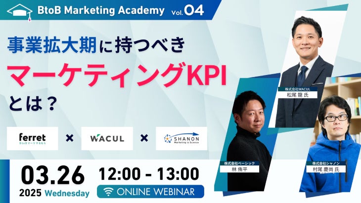 株式会社シャノン(本社:東京都港区、代表取締役:永島 毅一郎)は、3月26日(水)開催の「マーケティング成果を最大化する 事業拡大フェーズで押さえるべきKPI」をご紹介する共催ウェビナーに登壇します。