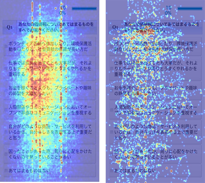 ✓アンケート回答中の視線の滞在時間を計測
