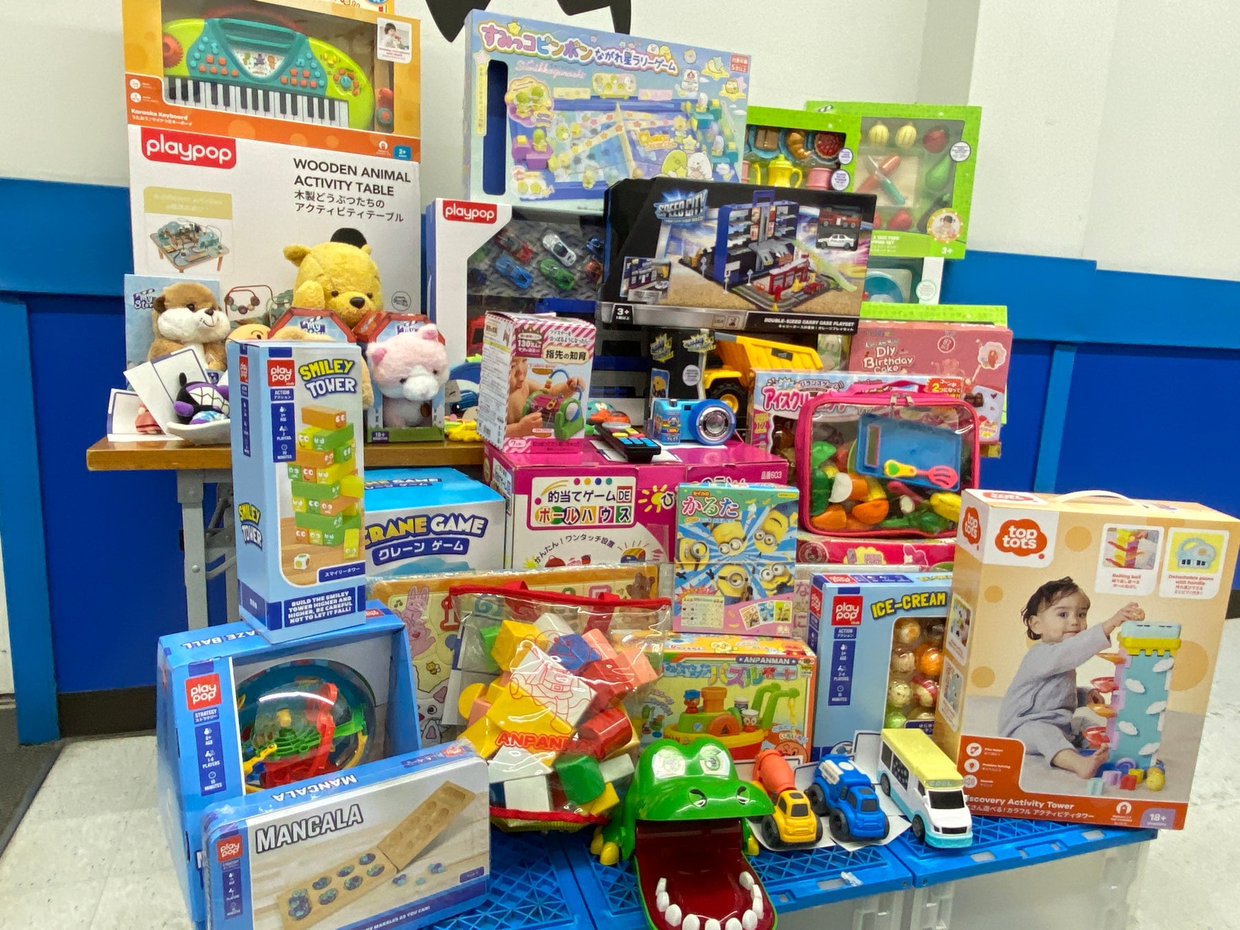■集まったおもちゃとトイザらスオリジナルブランド「Playpop」の新品おもちゃ