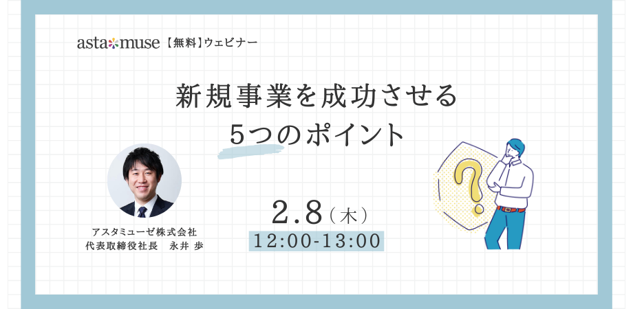経営企画・事業戦略担当者、新規事業担当者向けの無料ウェビナー「新規事業を成功させる5つのポイント」を2月に再開催