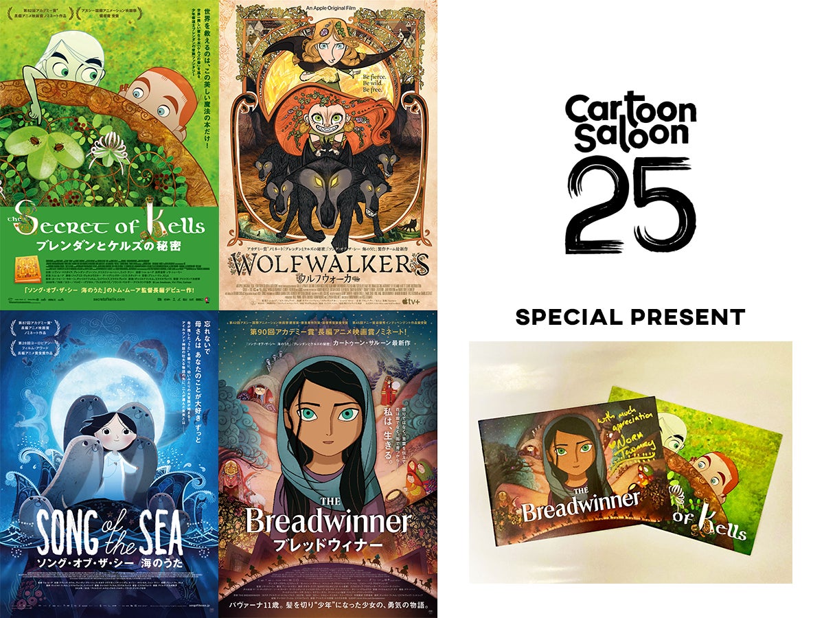 「カートゥーン・サルーン25周年 特集上映」で上映される作品は「ケルト3部作」と呼ばれる『ブレンダンとケルズの秘密』『ソング・オブ・ザ・シー 海のうた』『ウルフウォーカー』に『ブレッドウィナー』を加えた長編4作品と、『レイト・アフタヌーン』『アマゾンの森から来たモンスター』(劇場初上映)の短編2作品。この中から長編1作品と短編1作品を、各劇場日替わりで同時上映!