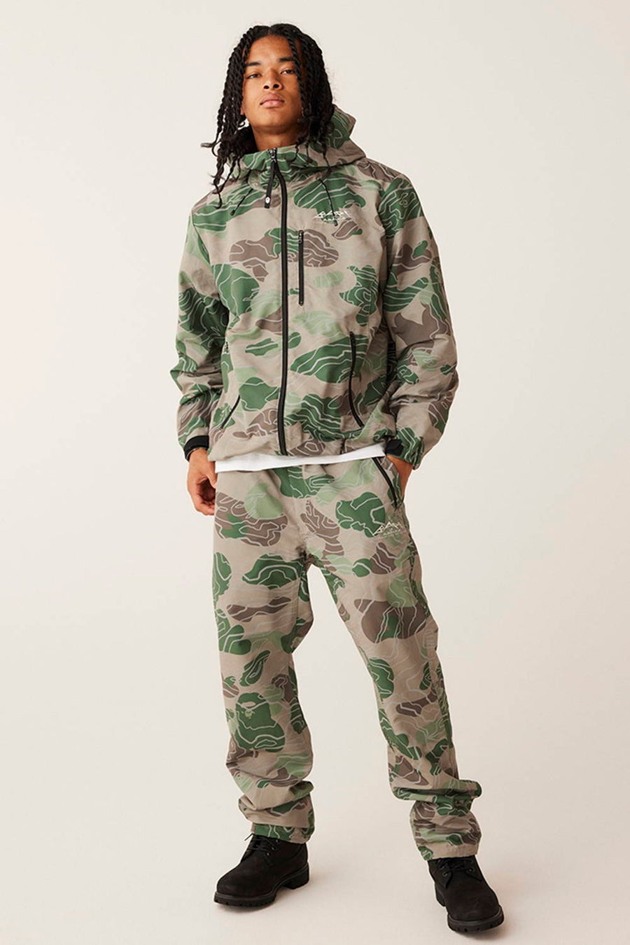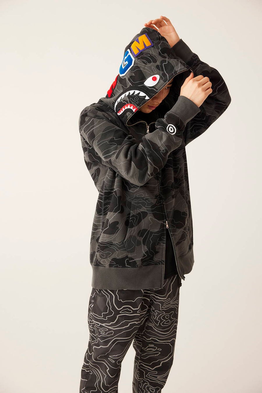 従来の1ST CAMOのカラーをアレンジし、その上に等高線をイメージしたリフレクタパターンをレイヤード。リフレクターパターンにはAPE FACEやBAPE®の文字が隠れており、ユニークでインパクトのあるBAPE®らしいパターンとなっています。