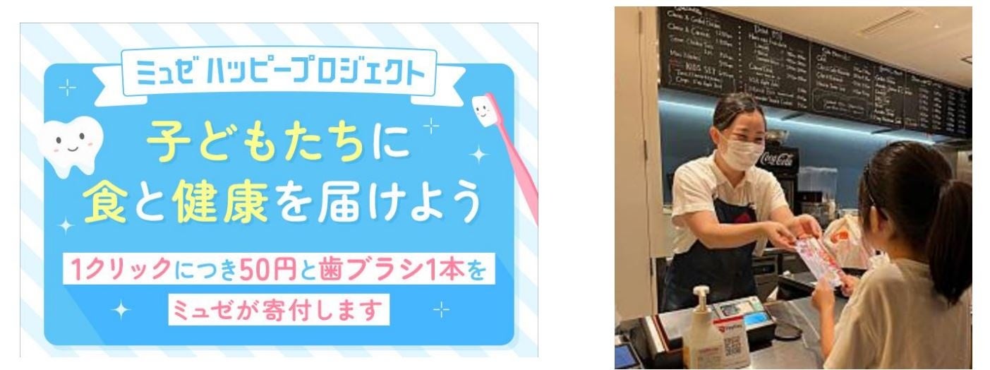 今回の寄付活動は、イベント特設サイトにて賛同いただいた方の1クリックにつき50円をミュゼプラチナムから 「こどもごちめし」を運営するNPO法人Kids Future Passportへ寄付することで、こども食堂での美味しい食事を提供します。さらに、全国の活動賛同飲食店にて子ども用歯ブラシとオリジナル歯育チラシを、来店された子どもたちへ無料で配布しました。
