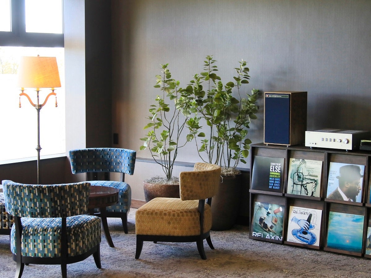 レコードが流れるラウンジではお酒を含むドリンク類やその他こだわりのアミューズをお愉しみいただけます。ラウンジにご用意のあるものは全てお部屋へ持ち込みいただけます。
