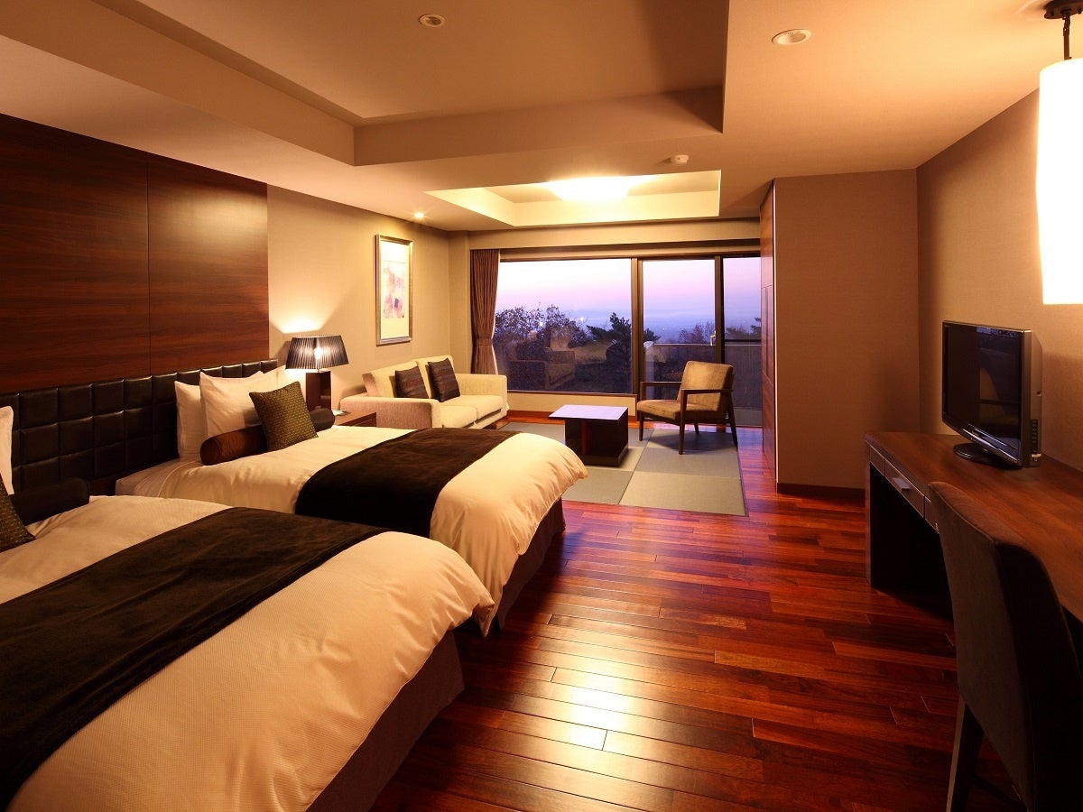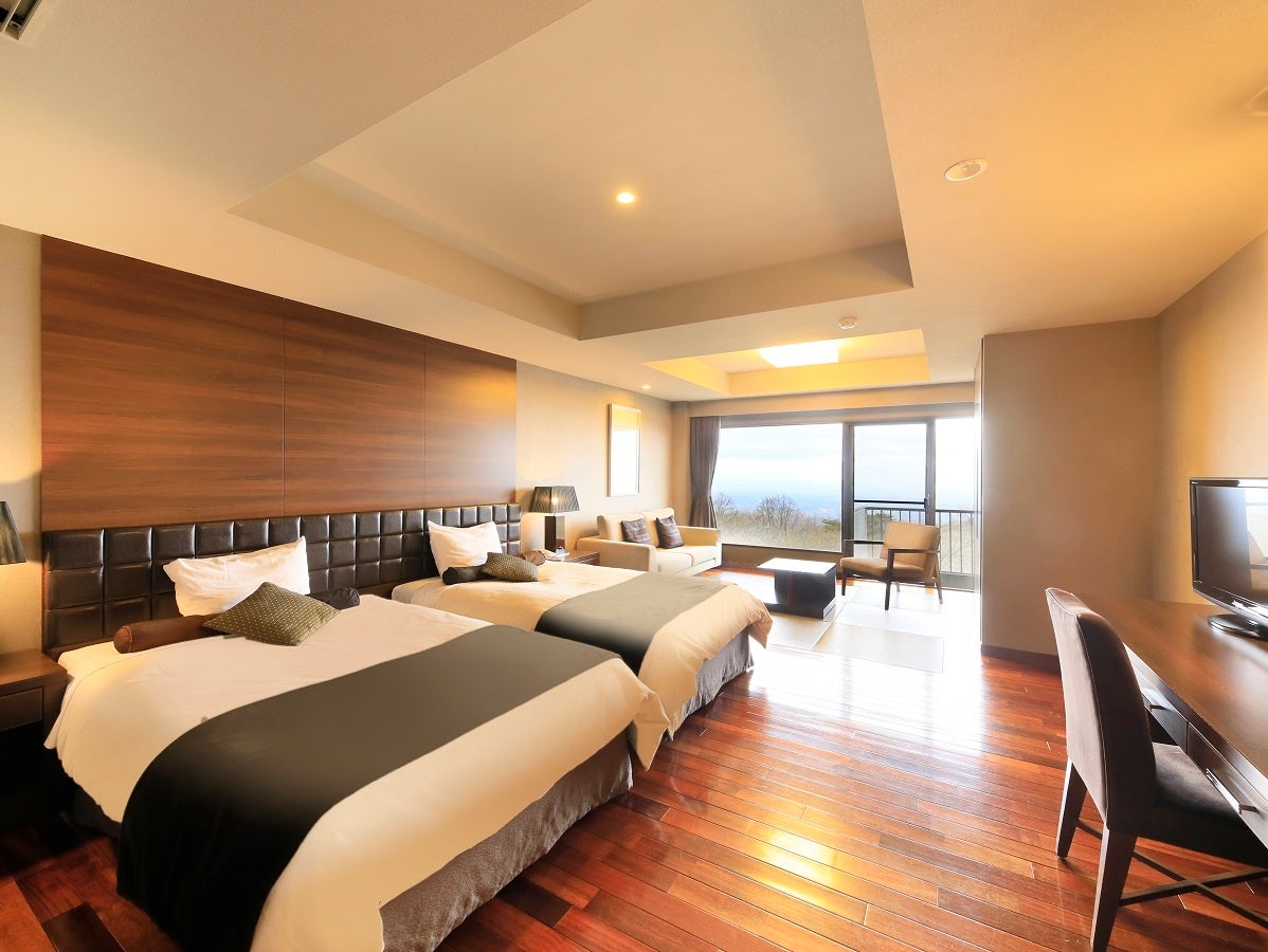 全室32㎡以上のゆったりとしたお部屋となっており、窓側にはソファーや畳があるのでお寛ぎ頂けるスペースがございます。