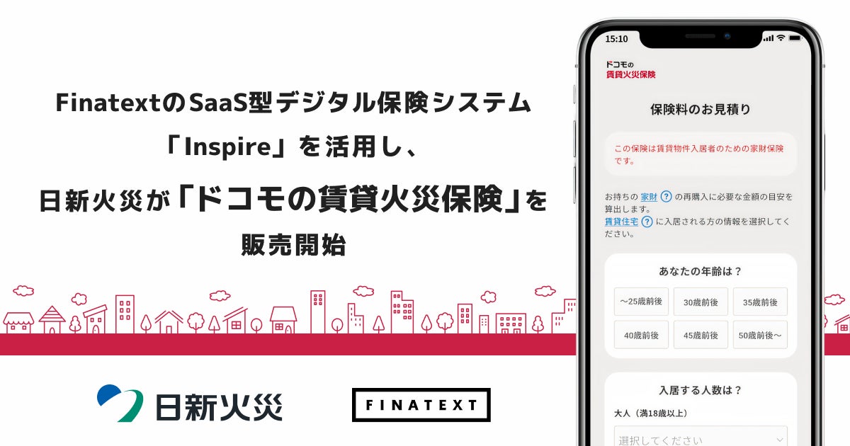 FinatextのSaaS型デジタル保険システム「Inspire」を活用し、日新火災が「ドコモの賃貸火災保険」を販売開始