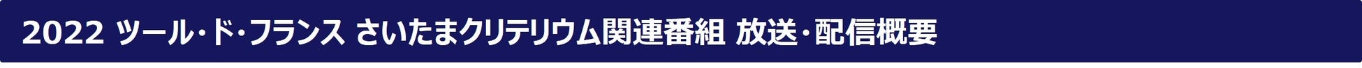 ●内容 「J:COM presents 2022 ツール・ド・フランスさいたまクリテリウム」に出場する選手をゲストに迎えて お届けするスペシャルイベント。世界トップ選手によるトークやクイズ大会など、レースでは見られない選手たちの楽しげな表情にもご注目ください。