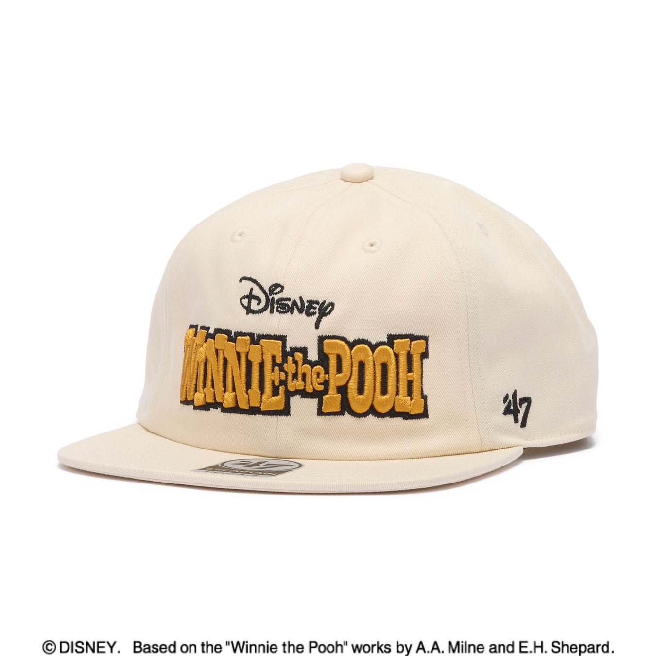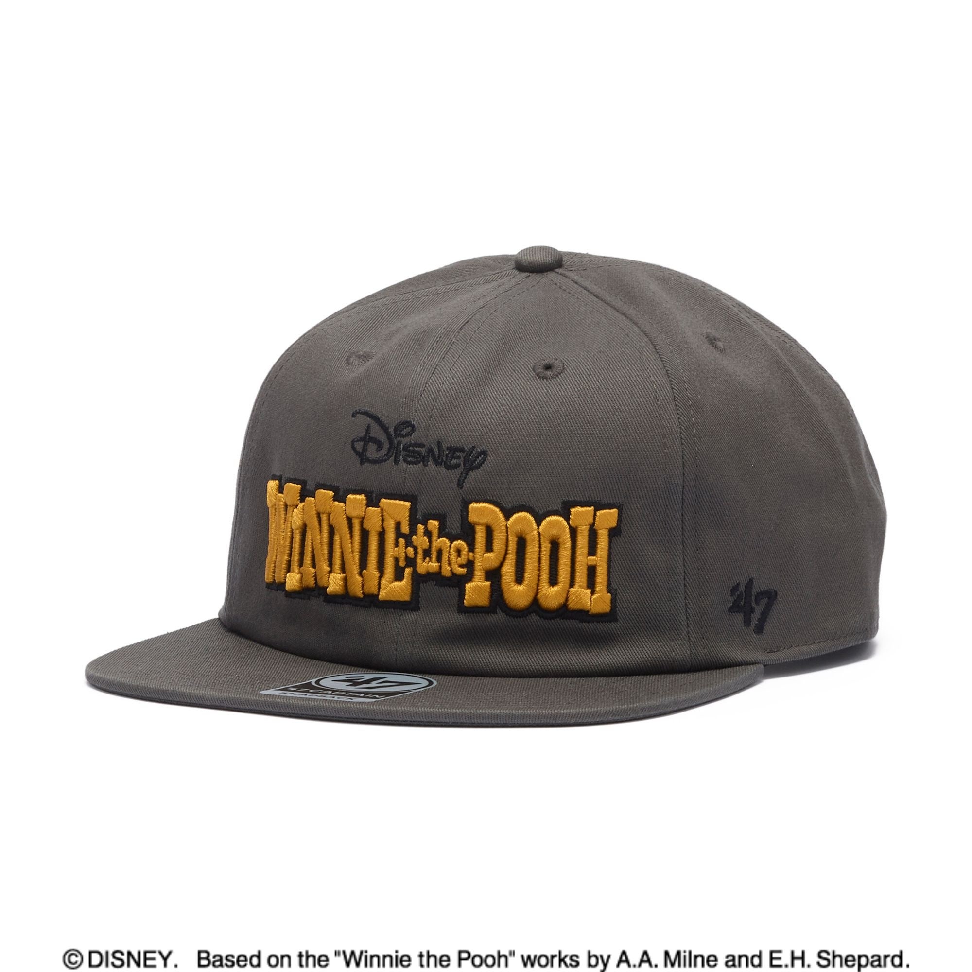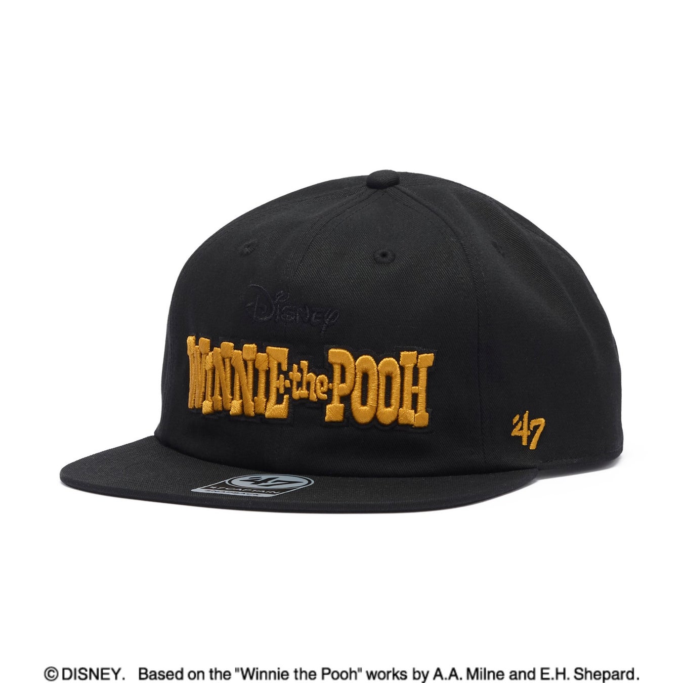 「CAPTAIN」は、四角型のフラットバイザーを採用したアジャスタブル仕様で、フロントパネルとスナップバックによりきれいなシルエットをキープします。フロントには「WINNIE THE POOH」のロゴ刺繍をあしらい、あえてキャラクターを使用しないミニマルなデザインに仕上げました。