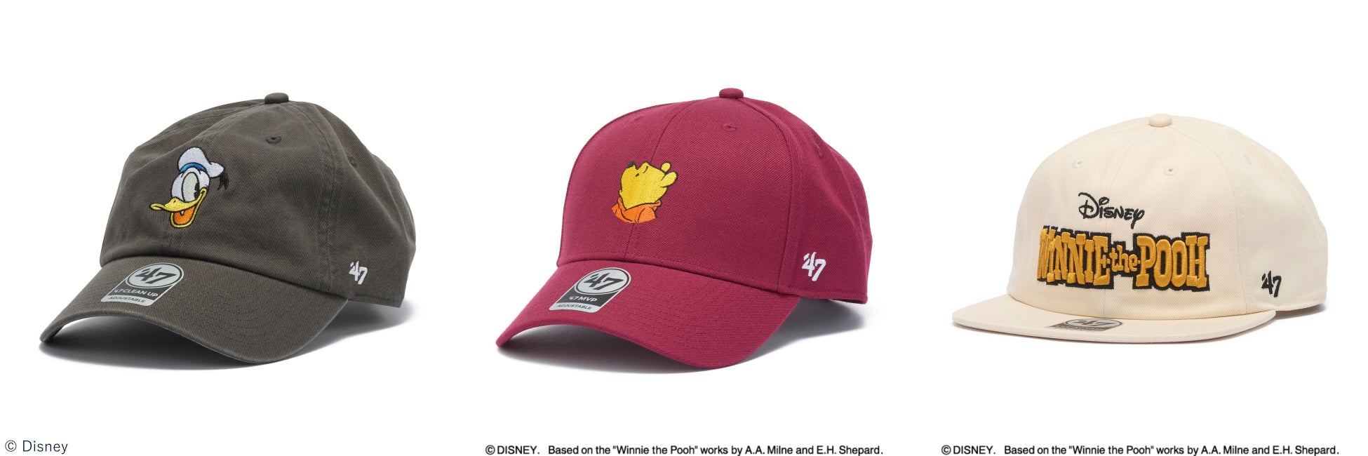 【’47(フォーティーセブン)】2026年ディズニーデザインコレクションより、5月発売の「ミッキー&フレンズ」と「くまのプーさん」のキャップが登場