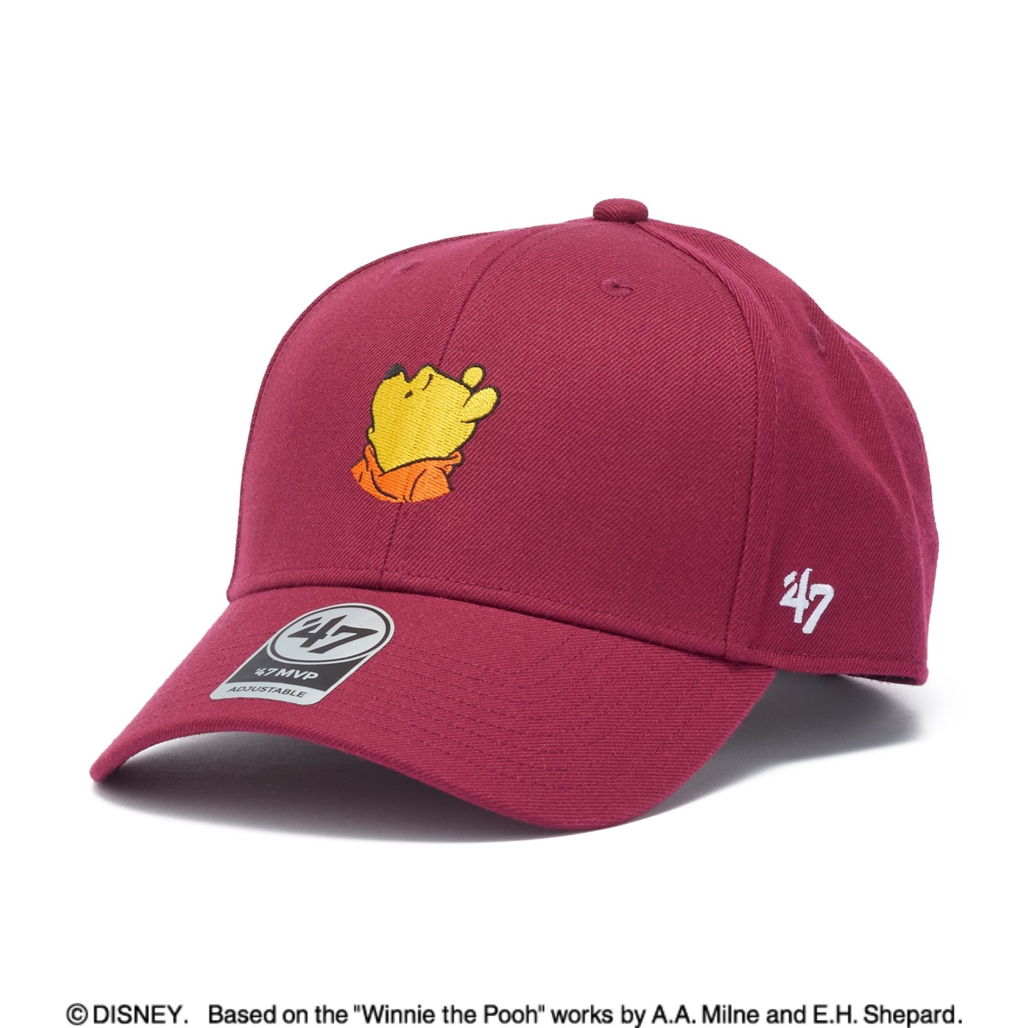 「くまのプーさん」モデルでは、プーさんの表情を刺繍した「MVP」と、ロゴ刺繍を配した「CAPTAIN」を展開します。「MVP」は、フロントパネルを立ち上げたクラシックなシルエットと快適なフィット感が特徴のアジャスタブル仕様で、フロントにプーさんの表情を配したデザインです。