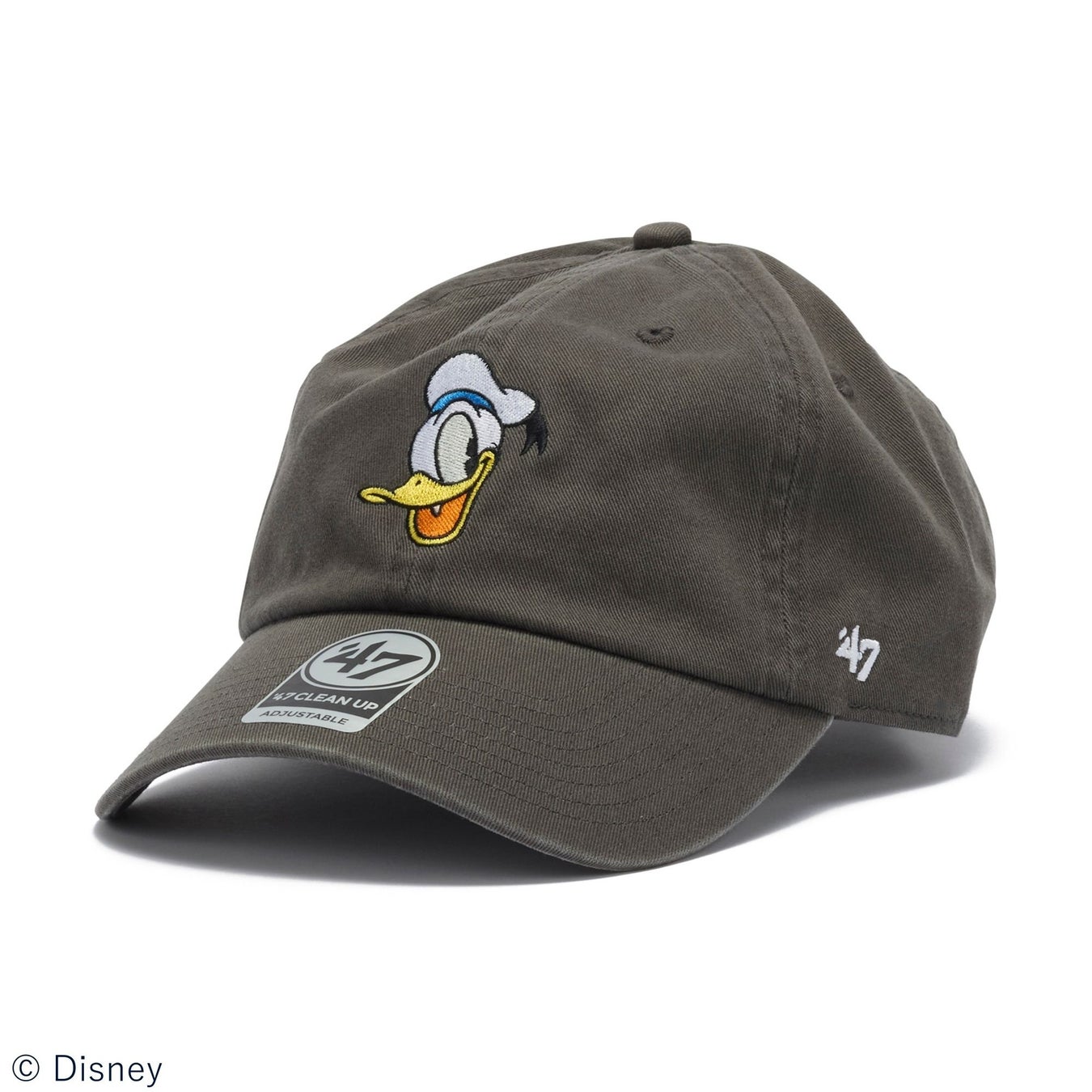 「ミッキー&フレンズ」モデルは、3キャラクターそれぞれの表情を刺繍で表現し、使い回しやすいチャコールカラーで統一。ベースには’47の定番シルエット「CLEAN UP」を採用しました。柔らかな被り心地と自然なフィット感が特徴で、日常の装いに取り入れやすいモデルです。