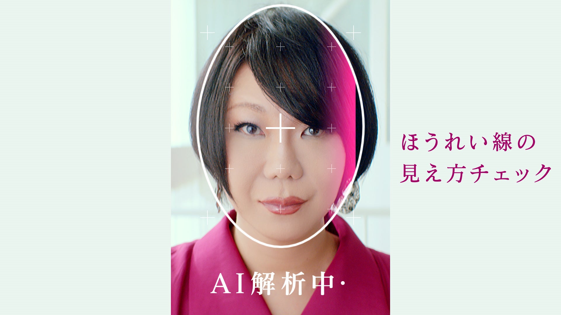 「ほうれい線 AI FINDER」を体験するミッツさんを表現したWeb CM。