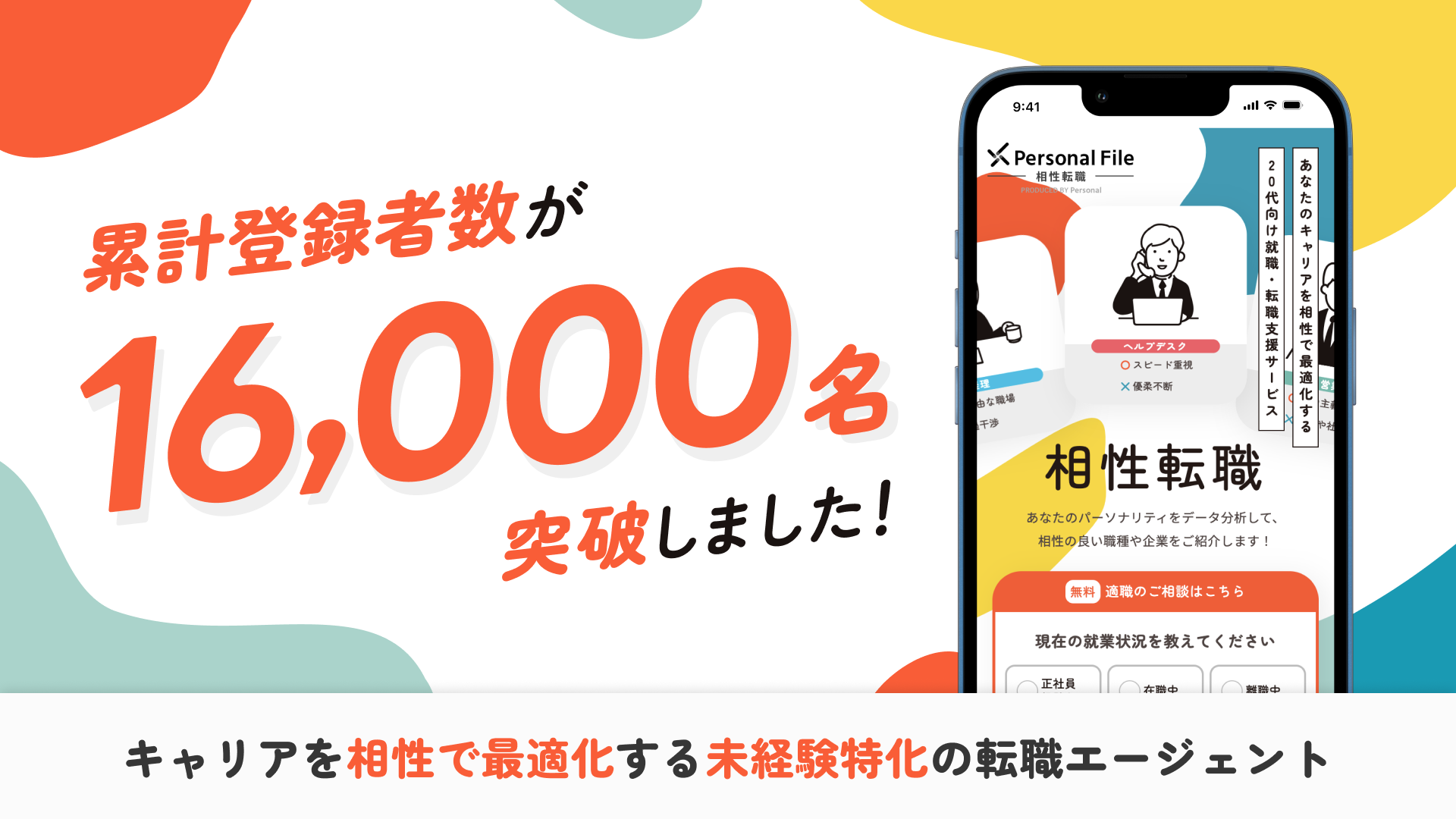 未経験に特化した就職・転職支援サービス「相性転職パーソナルファイル」累計登録者数16,000名を突破!