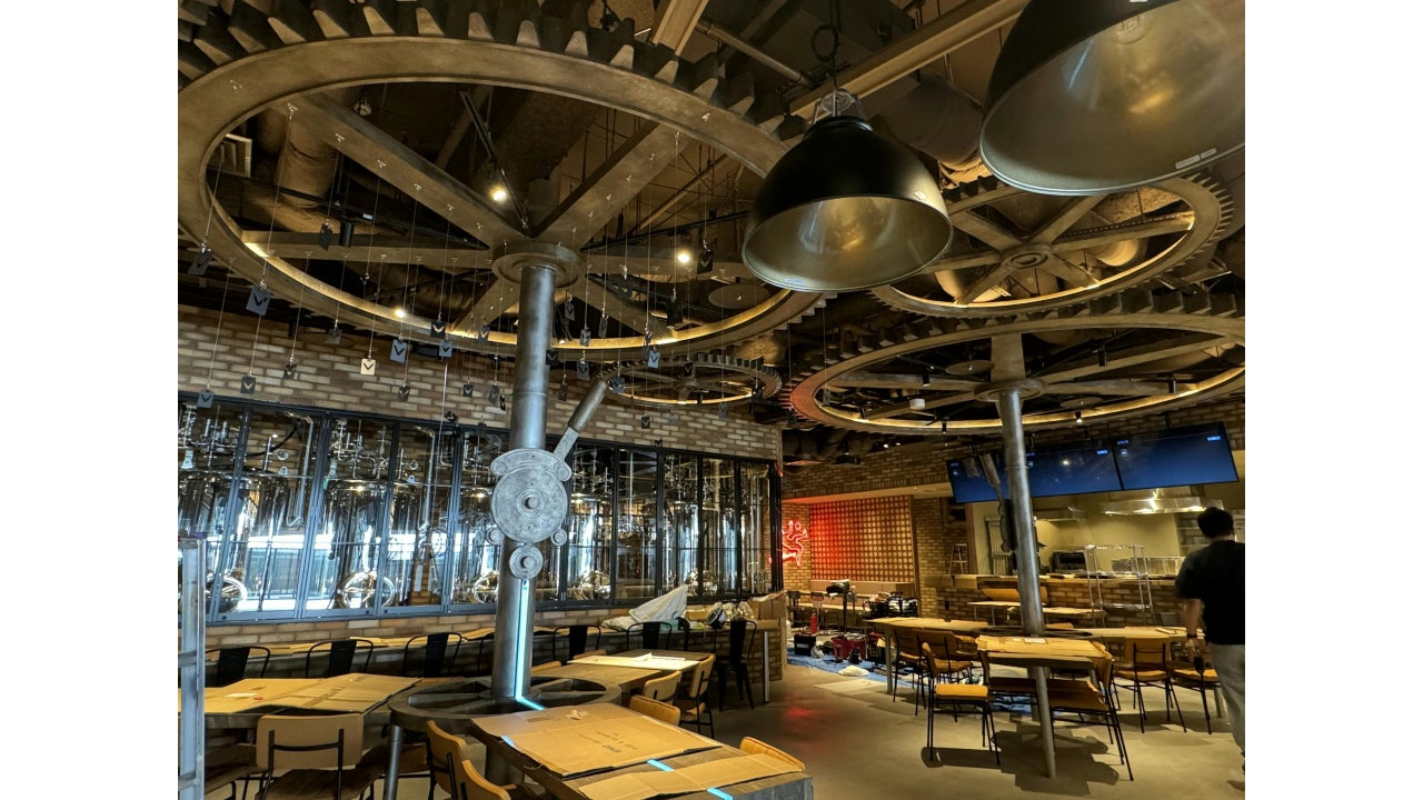 1階の醸造エリアでは10台のタンクが稼働し年間約9万リットルの醸造を予定、2・3階はレストランエリアとなっており、つくりたての新鮮なクラフトビールを樽からそのまま注ぎ提供いします。醸造所が併設されているからこそ味わうことのできる、できたてのビールの味を毎日楽しむことができます。