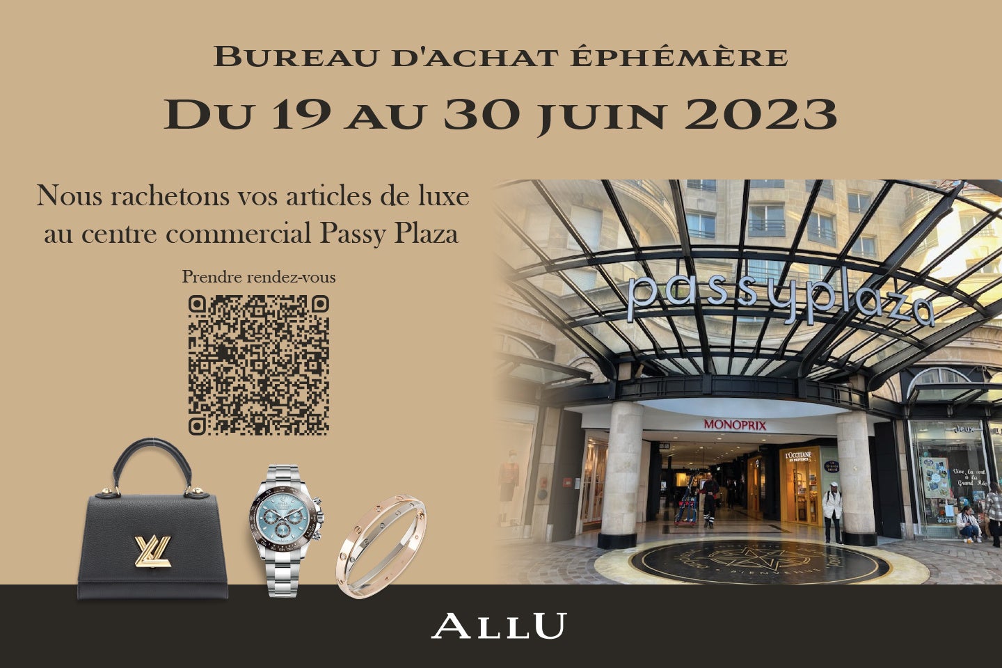 そしてこの度、高級住宅街のある16区・Passyエリアに構えるショッピングモール「Passy Plaza」にて、2度目の開催となるブランド買取「ALLU」の買取イベントの実施が決定いたしました(https://www.allufr.com)。「Passy Plaza」は16区に住む富裕層の行きつけのショッピングモールとして、終日にぎわいがあり、1号店である「ALLU Saint-Honoré店」への来店客も16区の方が多くいることから、既存のお客様への利便性向上や、「Passy Plaza」のお客様への「ALLU」の認知拡大を目指して買取イベントを実施いたします。
