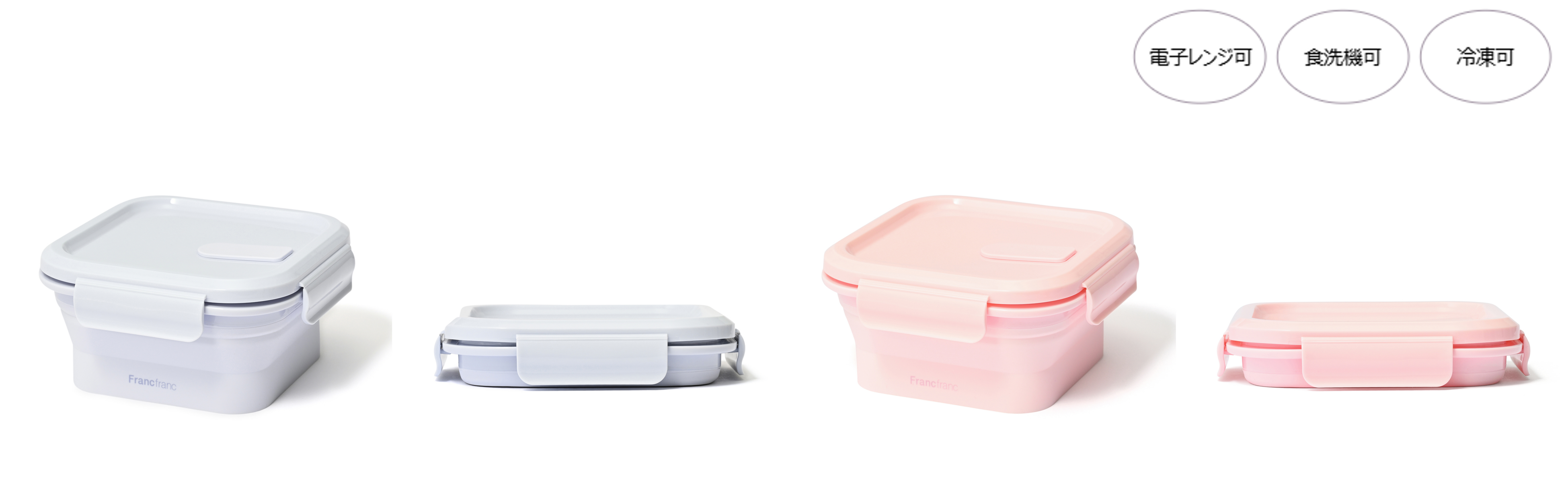 忙しい朝でもさっと準備ができる冷凍可能なお弁当箱やシリコンカップ、バッグの中でかさばらない省スペース仕様のお弁当箱など、毎日のお弁当習慣にうれしい工夫を詰め込みました。スリムに畳める「折り畳み式」、「2WAY仕様」、「冷凍」などの最新機能を備えながら、春らしい明るいカラーで統一されているので、ランチタイムの華やかなコーディネートも楽しめます。