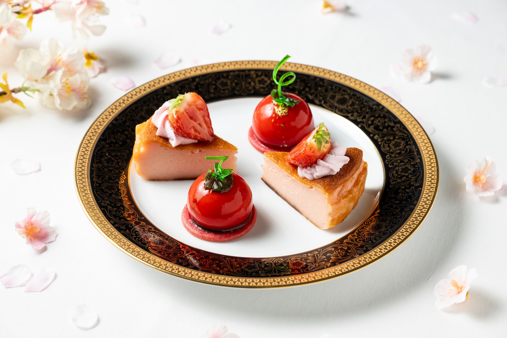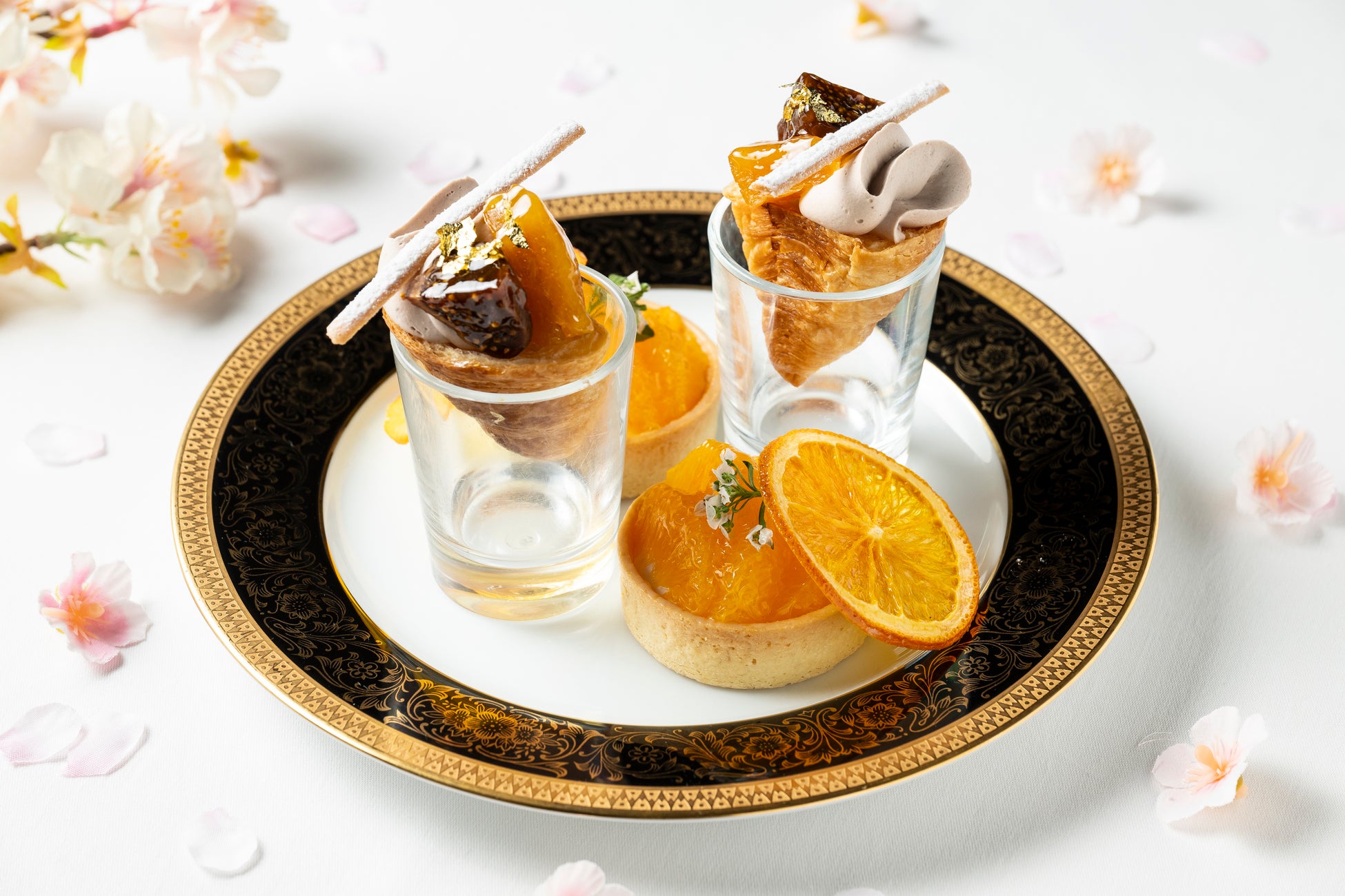 アフタヌーンティーを彩るのは、柑橘類の皮を使用したマーマレードタルトや、規格外の苺を活用したジャムと合わせて楽しむ、小麦の外皮部分を製粉した“ふすま粉”を使用したスコーンなど、ホテルパティシエ考案のエシカルなメニューの数々。非日常空間で宮廷に招かれたようなロイヤル気分に浸りながら、上品な甘さのスイーツとともに春の優雅なティータイムをご堪能いただけます。