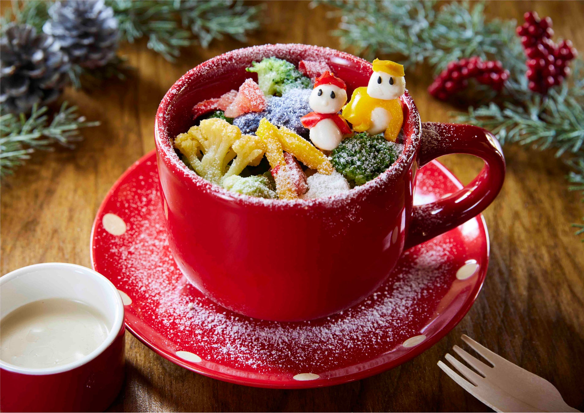 ワッフルやスープなど、クリスマスにぴったりなワンハンドグルメはいかが?あたたかいドリンクで寒さを癒しながらマーケットを楽しんで。