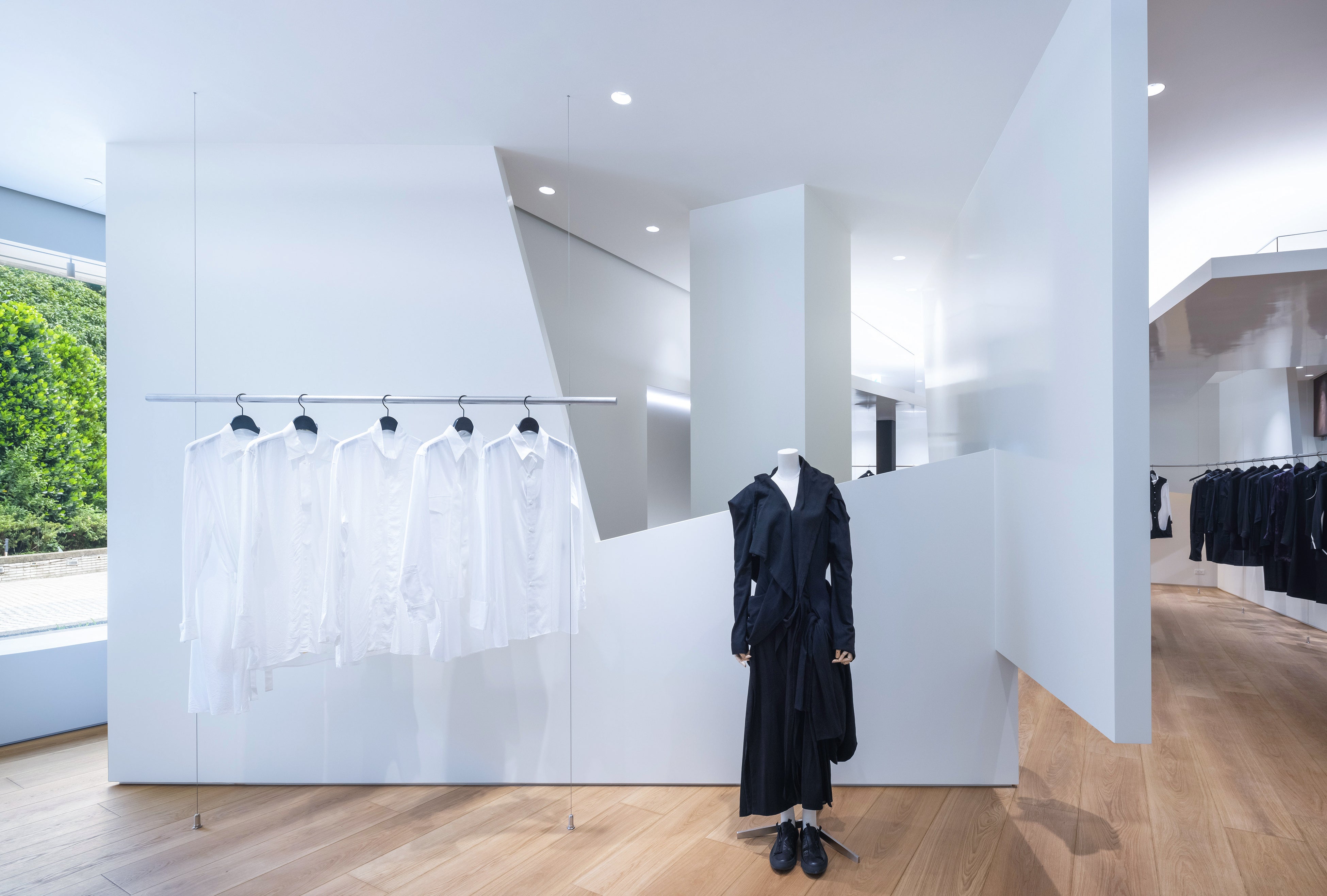 Yohji Yamamoto(ヨウジヤマモト)、Yohji Yamamoto POUR HOMME(ヨウジヤマモト プールオム)、discord Yohji Yamamoto(ディスコード ヨウジヤマモト)の3ブランドを取り揃えた、ヨウジヤマモトのモノクロームの世界観を表現した新店舗へぜひお越しください。