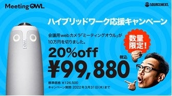 本キャンペーンでは、弊社が販売する会議室用360度webカメラ「Meeting Owl Pro(ミーティングオウル プロ)」を期間と数量を限定し、従来の2割引となる99,880円(税込)で提供することにより、ハイブリッドワークを応援します。