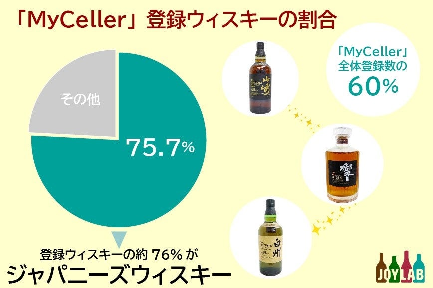 ジャパニーズウィスキーは、価格の高騰や投資対象としての可能性が様々なメディアで取り上げられています。JOYLABの買取でも常にトップシェアをキープしていますが、『MyCeller』の登録データにより「買取に出さずに所有している」状態のお酒に関してもシェアが大きいということがわかります。
