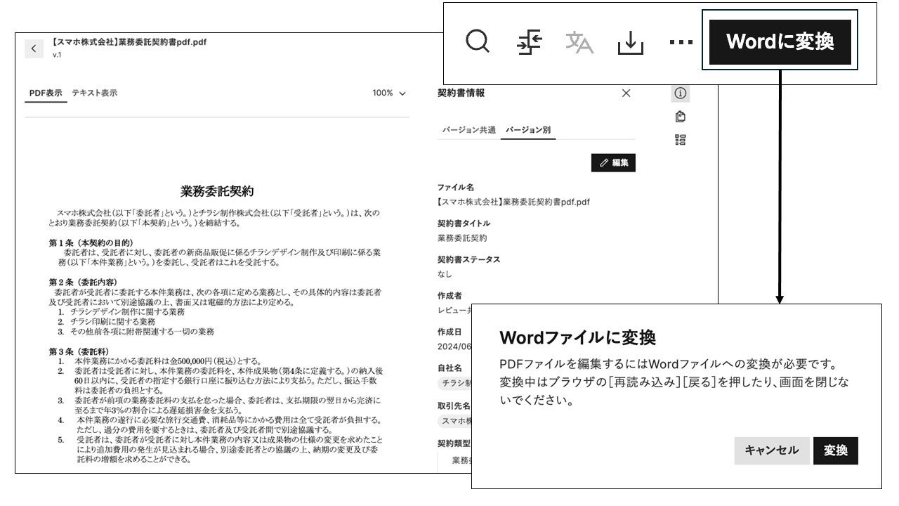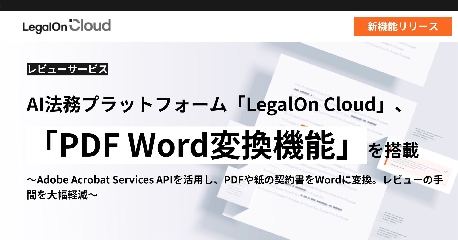 株式会社LegalOn Technologies(本社:東京都渋谷区 代表取締役 執行役員・CEO:角田 望)は、法務業務全体を包括的に支援するAI法務プラットフォーム「LegalOn Cloud」にて、「PDF Word変換機能」をリリースしました。