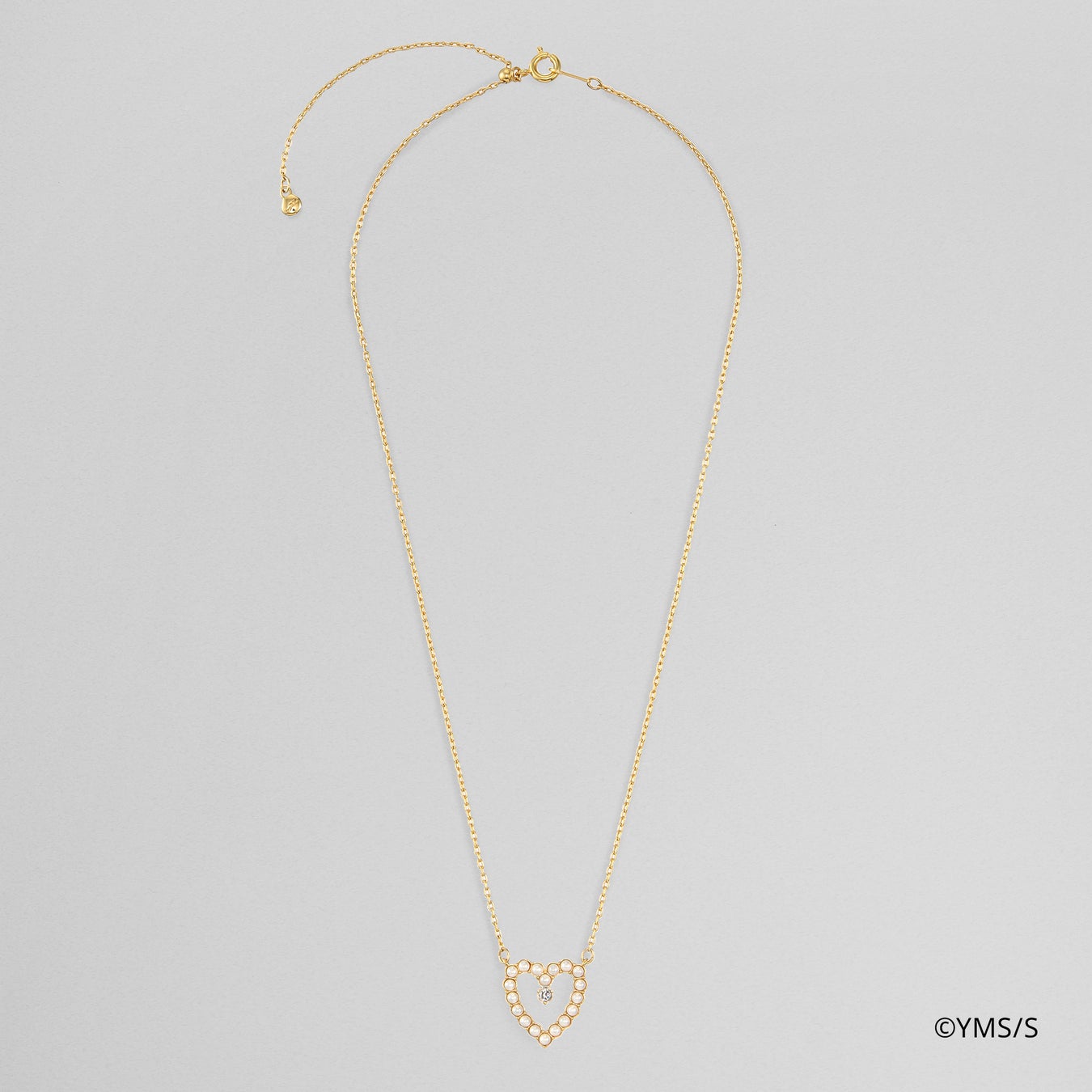 小さなパールでかたどったハートの中で、キュービックジルコニアがきらりと輝くネックレス。程よく肌に馴染み、スライドアジャスターを用いているので、その日の装いに合わせて長さの調整が可能です。