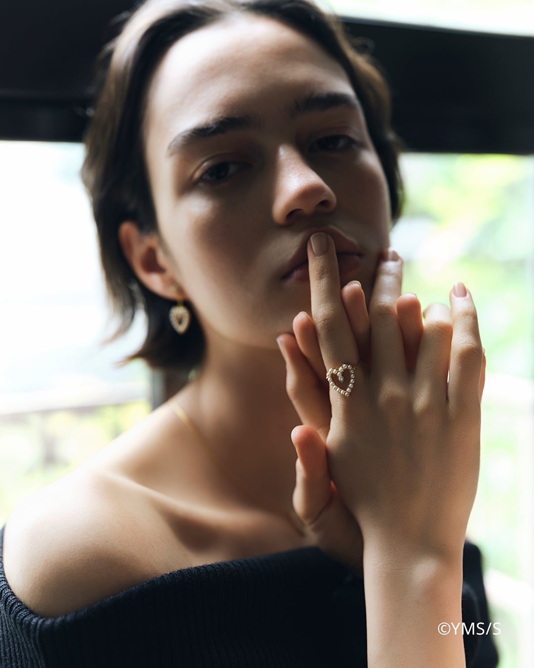オープンハートのモチーフがぴったりと指に沿うチェーンリング。スライドアジャスターを採用し、約20号までサイズ調整が可能なので、その日の気分で好きな指に着用することができます。