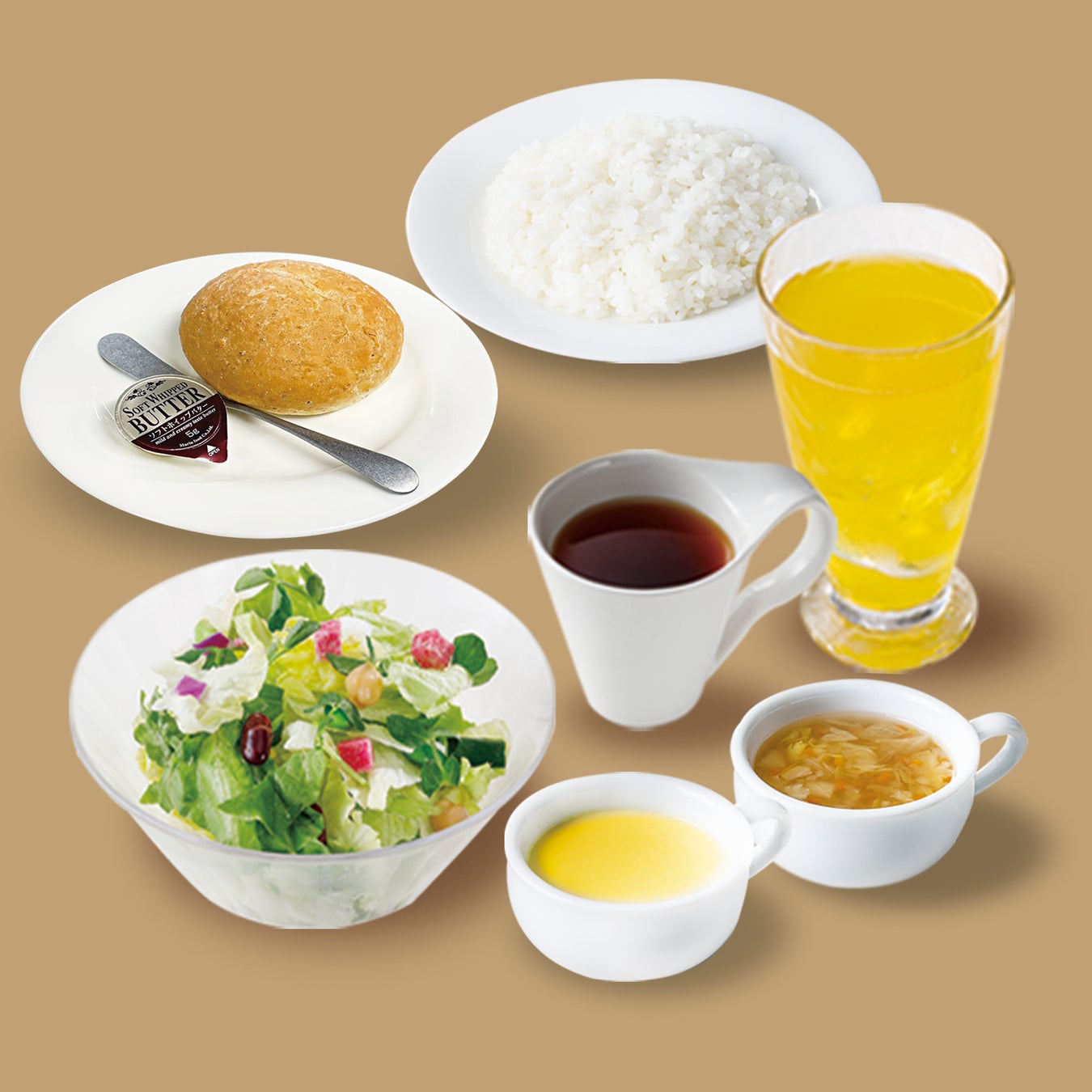 全てのメニューにライスバーorパンさらにスープバー