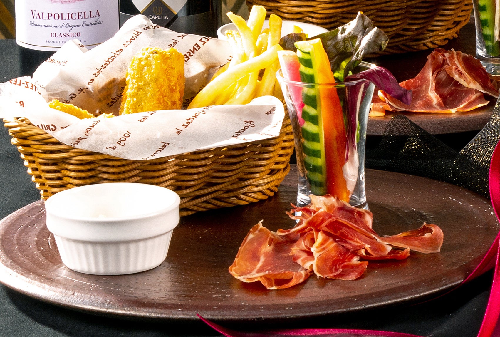 (スパーリングワイン、白・赤ワイン、ハイボール、ビール、ソフトドリンクからお選びいただけます)