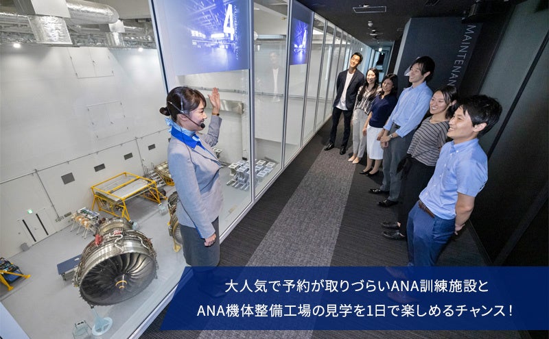 ANA Blue Base Tour(訓練施設見学)は世界最新鋭の訓練機器や施設などを、ANA Blue Hangar Tour(機体工場見学)では、実物の飛行機と整備士が働く姿を間近でご覧いただけます。いずれも通常入場できないエリアに入場でき、予約が取りづらいほどの人気ツアーです。ANA訓練施設とANA機体整備工場の見学を1日で楽しめます。