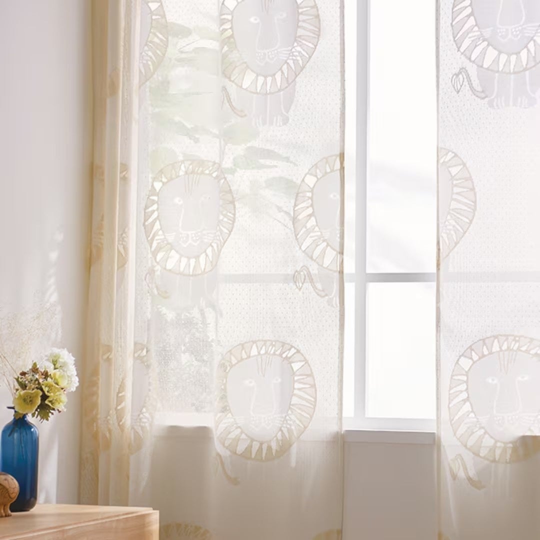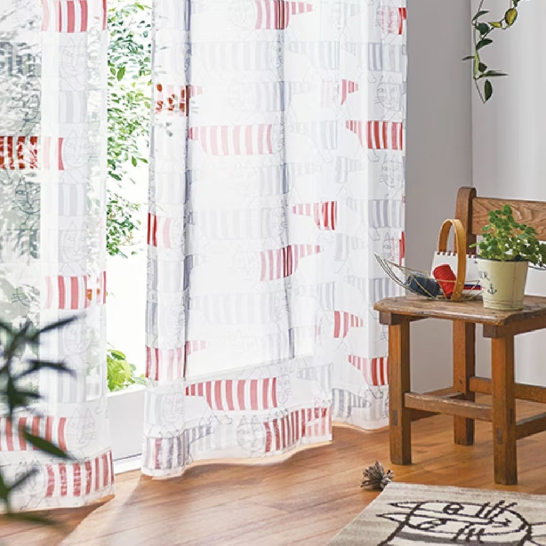 素朴な編み地に浮かび上がるリサのキャラクターたちがやさしげな雰囲気!光を調節したり、プライバシーを守ったりと、レースカーテンの役割は様々です。ナチュラルなジャガード、軽量かつ透き通るボイル、ふわもこなパイル、の3つのバリエーションからお選びいただけます。