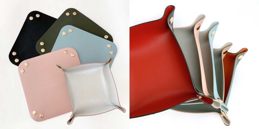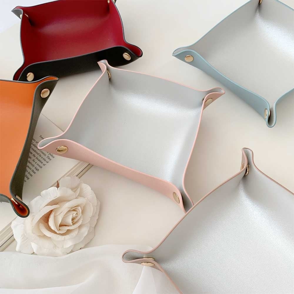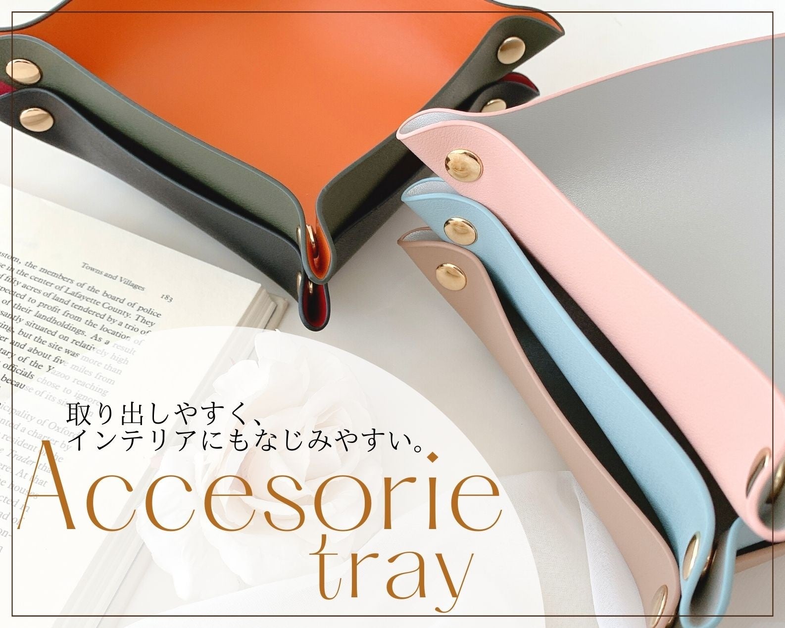 また、四隅をスナップボタンで留めるタイプのレザー調のアクセサリートレーとなっており、簡単に組み立てが可能です。