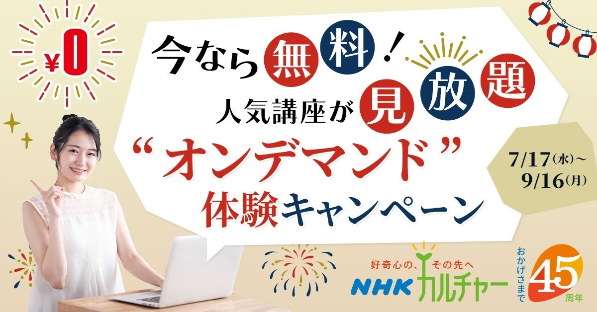 【NHKカルチャー】今なら無料!人気講座が見放題 “オンデマンド”体験キャンペーン実施中