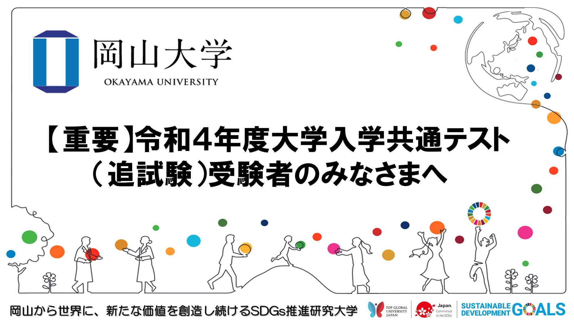 【岡山大学】【重要】令和4年度大学入学共通テスト(追試験)受験者のみなさまへ