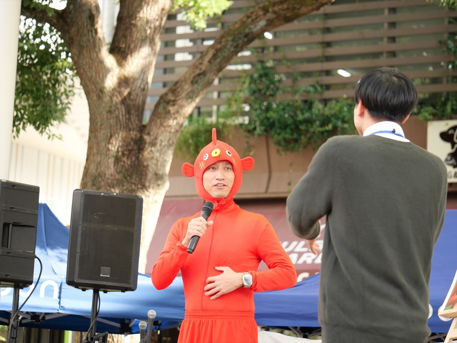 2023年10月14日(土)、快晴に恵まれたコクーンシティ さいたま新都心(さいたま市大宮区)では、『おとな六法』出版記念イベントとして、まず14時からトークショーを開催。トークショーでは、動画にもごくたまに登場するレア人気キャラクター「タケ金魚」の格好をした岡野弁護士と、のりちゃんとの掛け合いで爆笑に包まれながら進行しました。