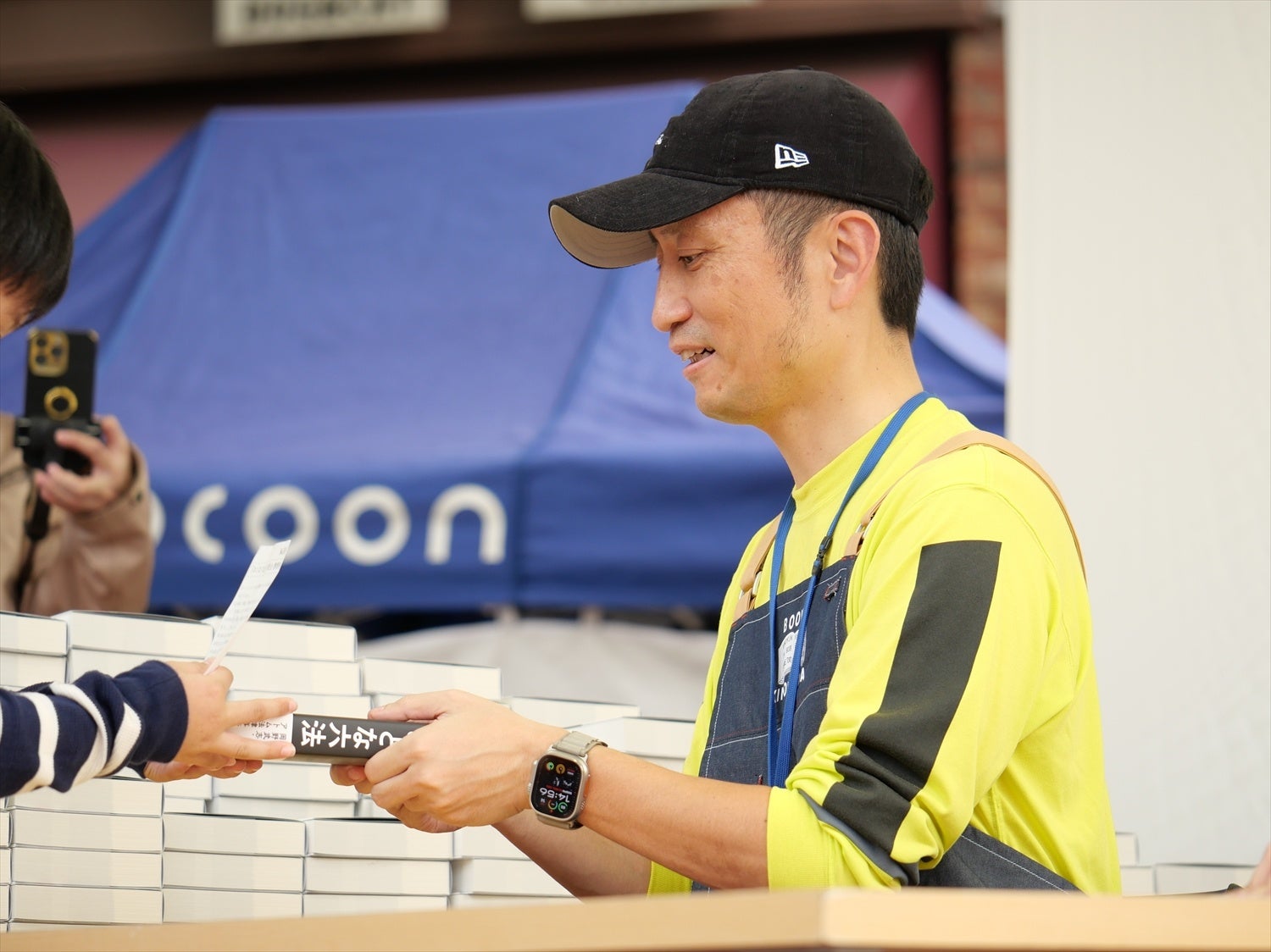 限定250冊の書籍の即売会には、朝10時前から整理券を求める人が列をなし、正午から販売が始まった整理券はあっという間に完売。即売会では、岡野弁護士が参加者一人ひとりに笑顔で書籍を手渡しました。