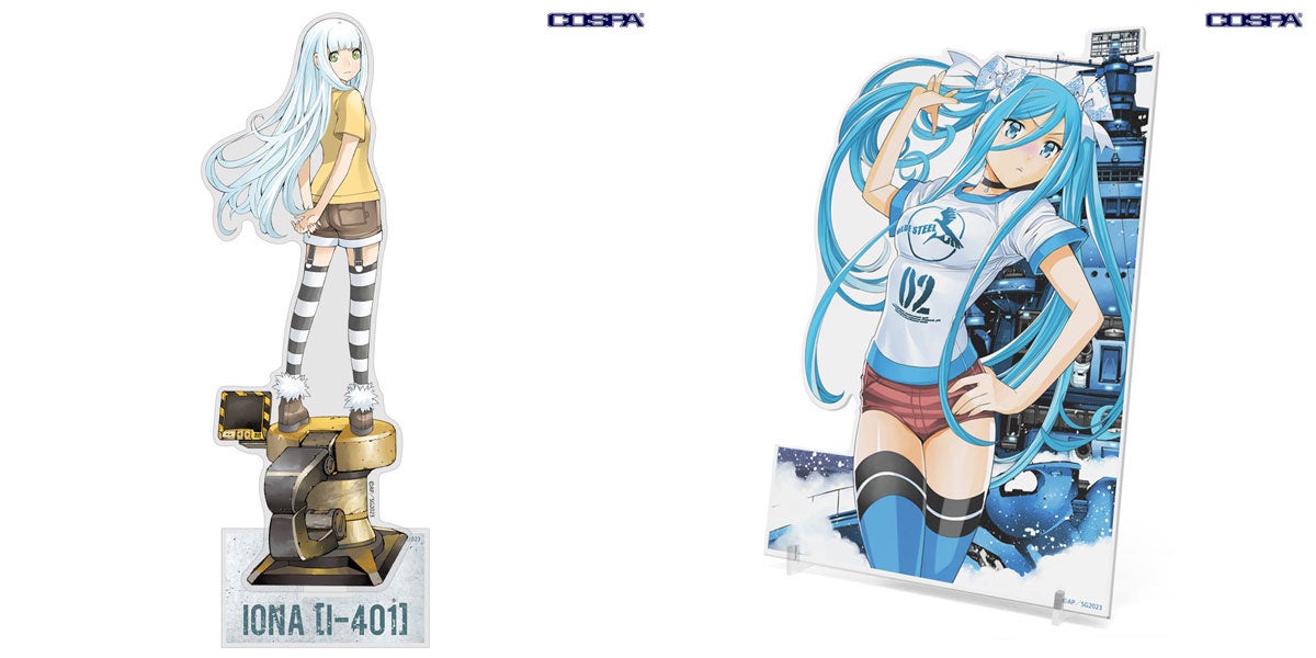 大きめサイズで存在感のある「原作版 イオナ アクリルスタンド(大) Ver.2.0」や「原作版 タカオ アクリルアートスタンド」をはじめ、作中でイオナが愛用する『はたらくおねえさん』のTシャツをイメージした「ラグランTシャツ」など、COSPA(コスパ)より発売決定です。