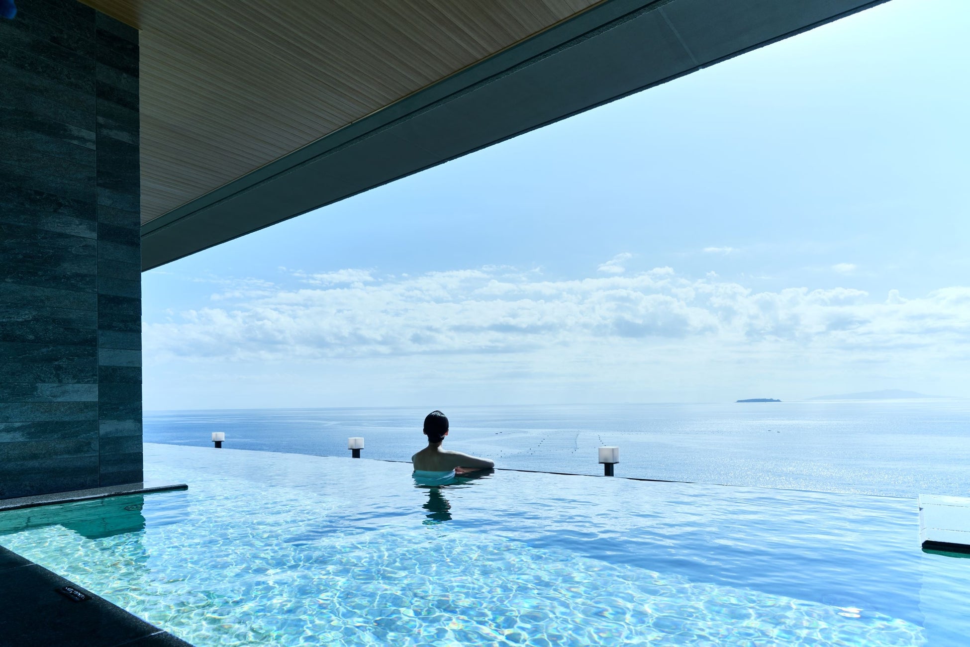 「水天一碧に溶け込む、至福のひととき」