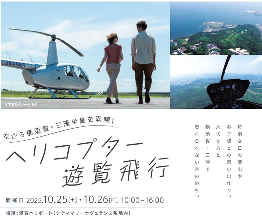 本事業は、観光誘客や地域経済の活性化を図るため、ヘリコプターを「横須賀・三浦半島エリアの新しい観光交通・体験の手段」として活用し、地域の自然・歴史・文化資源のさらなる活用と発信力向上に取り組みます。地域と民間企業が連携して、インバウンドや富裕層を含む幅広い旅行者のニーズに応え、新たな観光価値の創出を目指します。