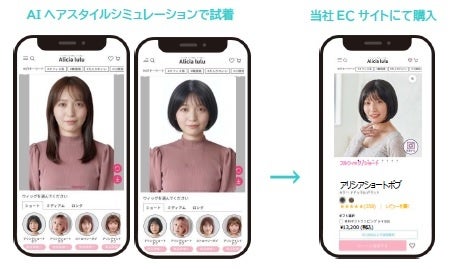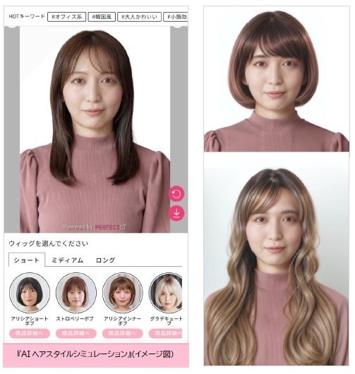 60種類以上のヘアスタイルをパーフェクト社のAI・AR技術を介し、スマートフォンでECサイトにアクセスいただ