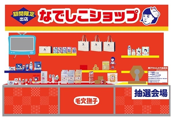 先行発売の新製品「毛穴撫子 お米の洗顔」や実店舗では初お目見えとなるオリジナルの「撫子雑貨」もお買い求めいただけます。さらに、人気の製品やオリジナルQUOカードが当たる「撫子ちゃんの大抽選会」、角栓・角質をモコモコ泡で洗い流してキレイな毛穴を目指す「毛穴すっきりゲーム」など、ここだけのお楽しみが盛りだくさん。
