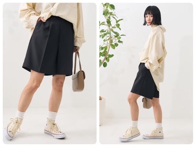 カジュアルさが強いショートパンツも、リネンライクなさらっとした生地感でバランスよく取り入れ可能。