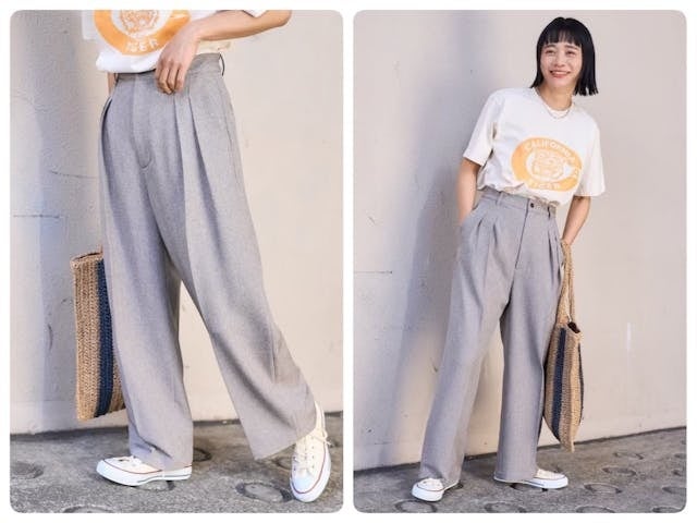 足を綺麗に見せてくれる程よいハイウエストさとセンタープレスがポイント。