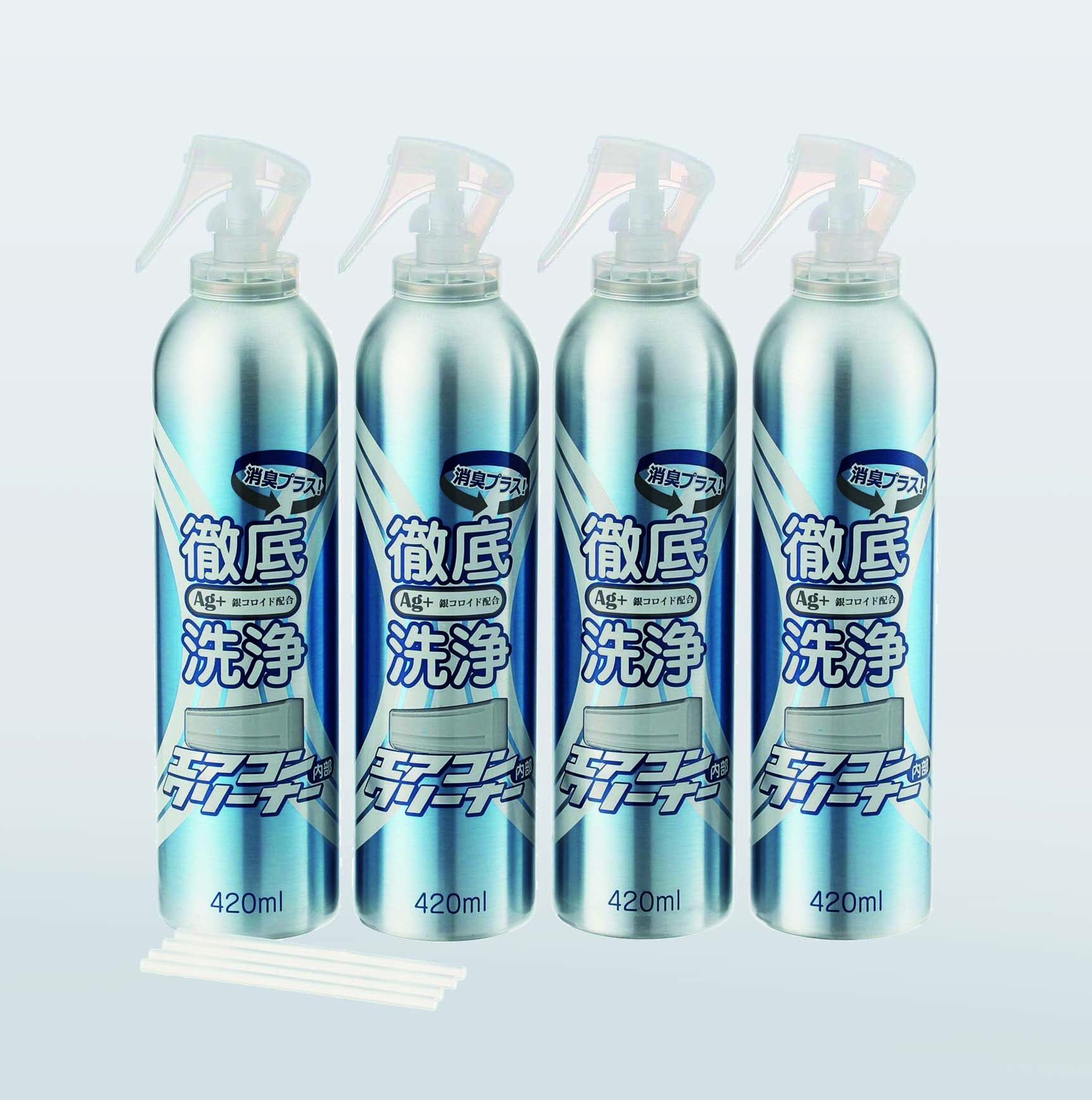 電解アルカリ水を使用し、強力な噴射でファンの奥まで洗浄します。今回は、4本セットで紹介します。