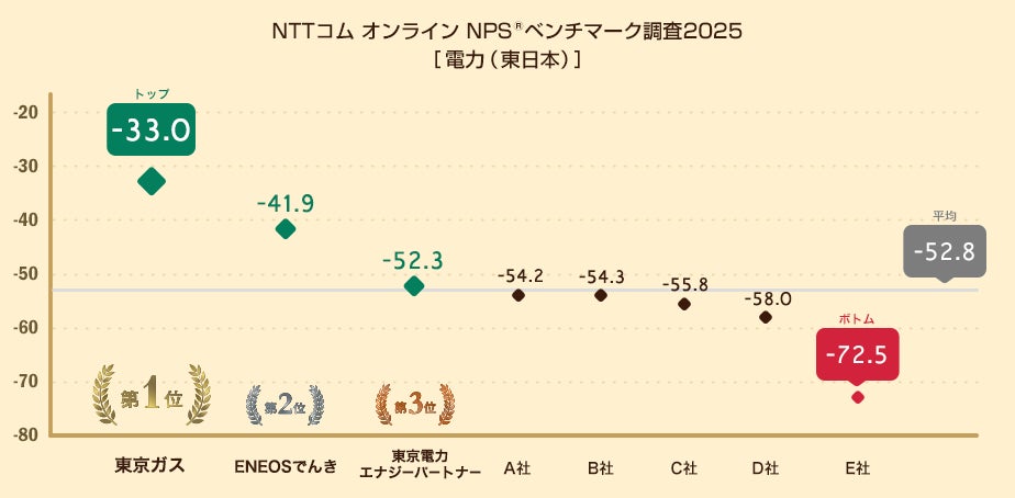 NTTコム オンライン、電力業界を対象にしたNPS®ベンチマーク調査2025の結果を発表。東日本部門1位は東京ガス、西日本部門1位は九州電力