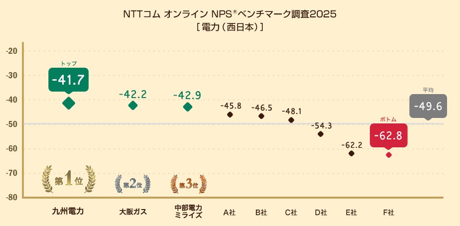 NTTコム オンライン・マーケティング・ソリューション株式会社(本社:東京都品川区、代表取締役社長:稲葉 秀司、以下NTTコム オンライン)は、電力業界を対象に、NPSベンチマーク調査2025を実施しました。この結果、最もNPSが高いのは、東日本部門では東京ガス、西日本部門では九州電力となりました。