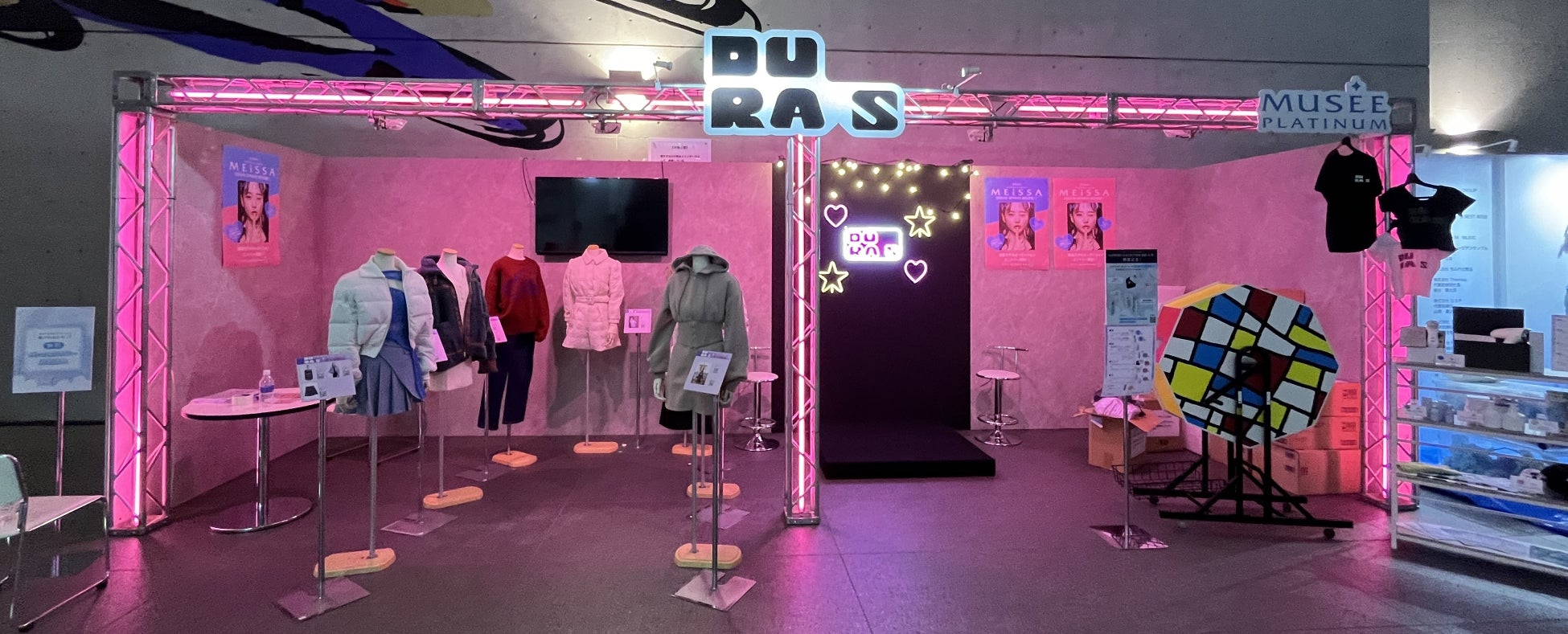 またDURASステージでは、安斉星来さんやPyun.A(ぴょな)さん、景井ひなさんなど、豪華ゲストモデルらが登場し、DURASの“かわいい”だけではなく、自由で独創的な世界観のファッションを会場の皆さまにお届けしました。ランウェイの終盤でDURASのオリジナルTシャツをモデルから投げ入れるサプライズパフォーマンスも行い、会場は大いに盛り上がりました。